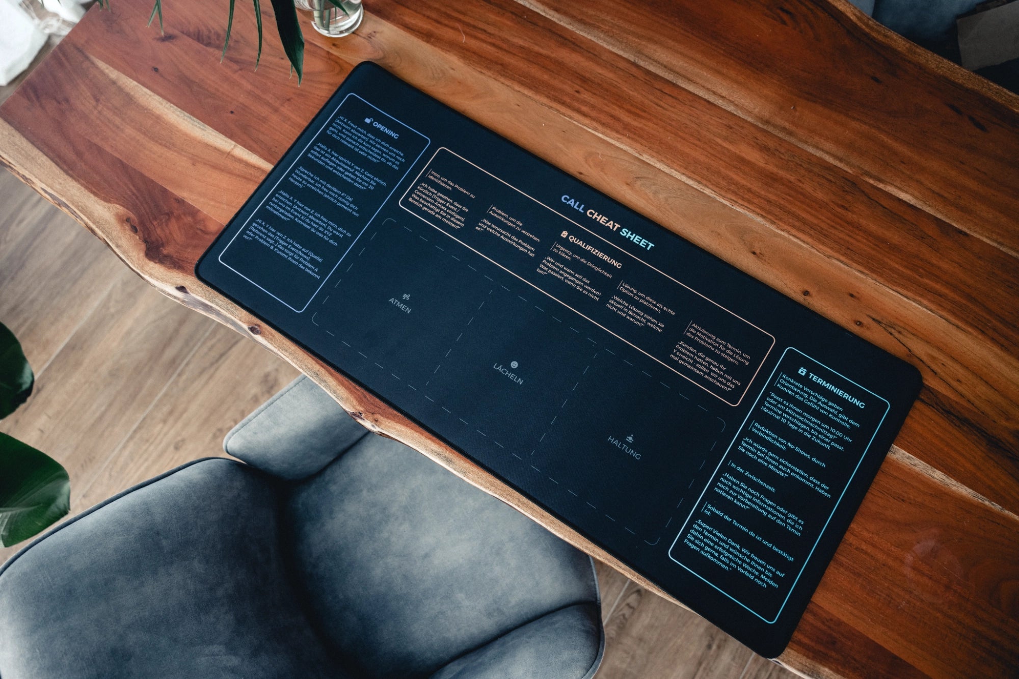 Die Matten geben dir visuelle Sicherheit im Call. Du siehst auf einen Blick, was wichtig ist – und stellst die Fragen, die wirklich zählen. So bleibst du im Flow, ohne zu zögern oder nachdenken zu müssen.